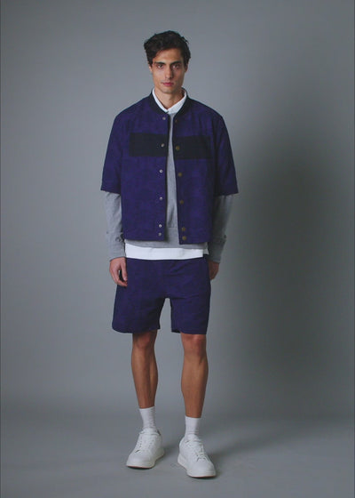 A single-pleated short. Artfully crafted in a deep indigo fabric. Woven in an all-over floral jacquard pattern. Rich in texture. Subtle in statement. The textured fabric adds subtle dimension, making these shorts as dynamic as they are comfortable.