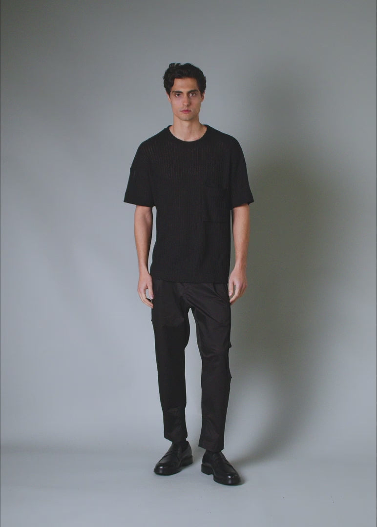 Black Open Weave Tee