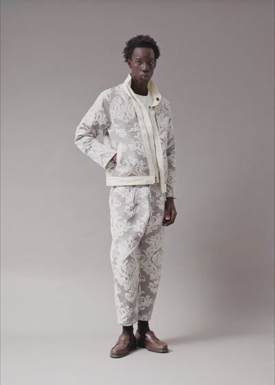 The Hand Loom Jacquard Pant is an ornate tonal jacquard. This fabric was crafted in a limited batch, embracing the essence of slow fashion where quality (not quantity) reigns supreme. Handwoven by skilled artisans on narrow-width looms, these artisanal fabrics offer distinctive pieces that cannot be found anywhere else... Giving you access to the Descendant of Thieves inner circle. The subtle sheen of the fabric is visually striking, making it one of our signature styles. This is not just an addition to your wardrobe; it is an addition to your art collection.
