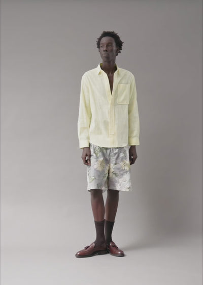 Quiet texture. Strong presence. This cross hatch fabric is a great alternative to a flat solid shirt, adding depth through weave, not print. Subtle from a distance, intentional up close. Soft to the touch. The floating front placket stops short of the hem. Intentional. Architectural. Unpredictable. The elongated chest pocket offers a point of difference. Its double layer construction adds subtle dimension, effortlessly setting you apart from the expected. Made unnecessarily well in limited batches.