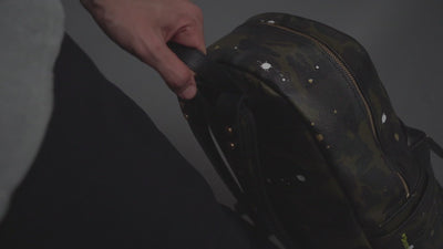 Descendant of Thieves in conjunction with Gentil Bandit. We decided to offer this backpack because it has a unique look to it. The camo with white and gold paint blotches give it a trendsetting design so you yourself can be a trendsetter.